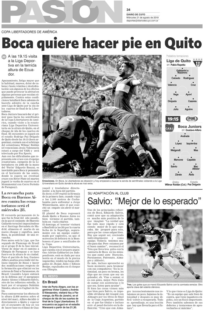 Diario de Cuyo | HOME | Noticias | Tapa Pasión Tapa Pasión 21 de Agosto 2019 Por Redacción Diario de Cuyo 20/08/2019 · 0:00 Escuchar la noticia Escuchar la noticia Your browser doesn’t support HTML5 audio Tapa Pasión Ver los comentarios ›