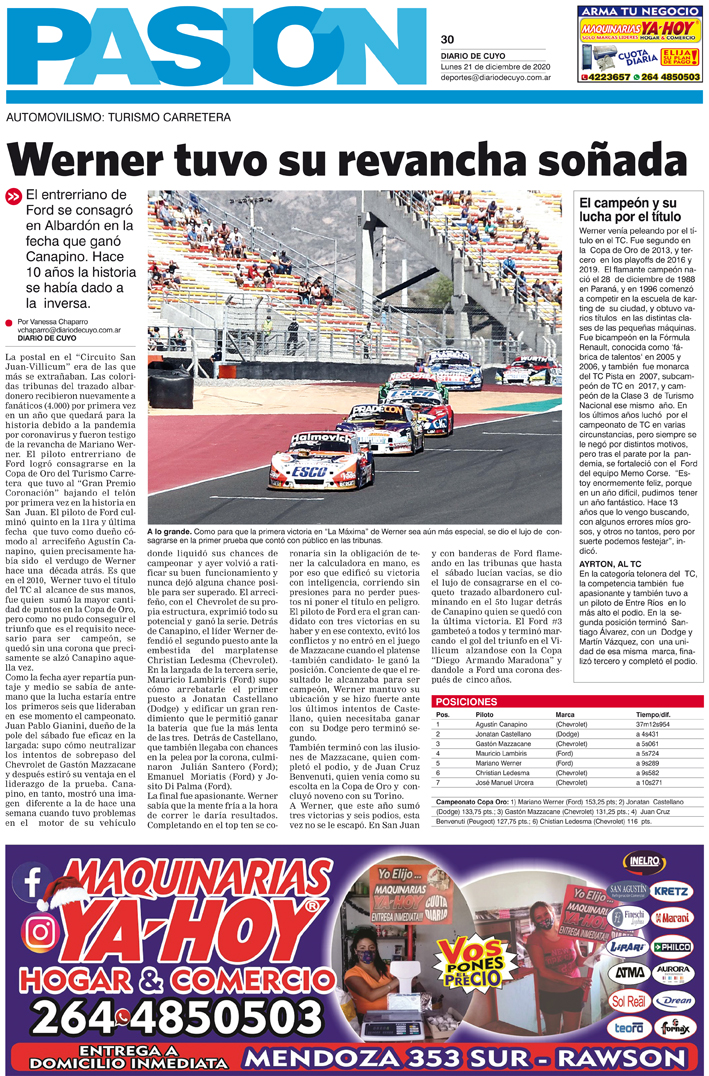 Diario de Cuyo | HOME | Noticias | Tapa Pasión Tapa Pasión 21 de Diciembre de 2020 Por Redacción Diario de Cuyo 20/12/2020 · 0:00 Escuchar la noticia Escuchar la noticia Your browser doesn’t support HTML5 audio Tapa Pasión Ver los comentarios ›