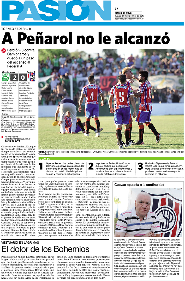 Diario de Cuyo | HOME | Noticias | Tapa Pasión Tapa Pasión 21 de Diciembre del 2017 Por Redacción Diario de Cuyo 21/12/2017 · 0:00 Escuchar la noticia Escuchar la noticia Your browser doesn’t support HTML5 audio Tapa Pasión Ver los comentarios ›