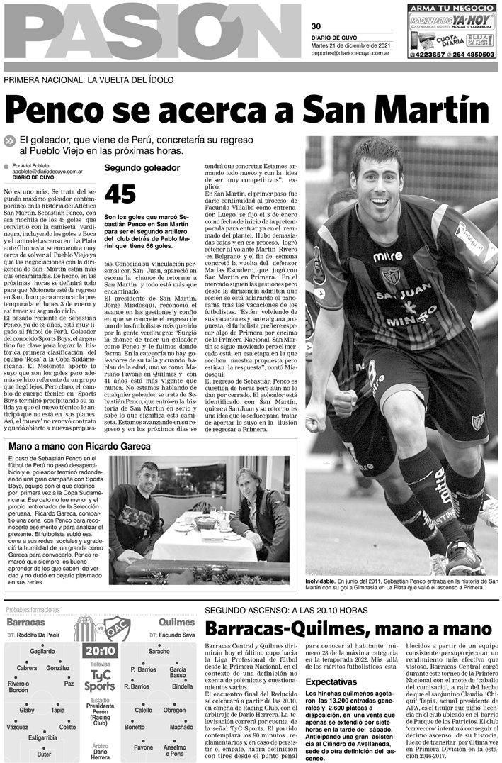 Diario de Cuyo | HOME | Noticias Tapa Pasión 21 de Diciembre del 2021 Por Redacción Diario de Cuyo 20/12/2021 · 0:00 Escuchar la noticia Escuchar la noticia Your browser doesn’t support HTML5 audio Ver los comentarios ›