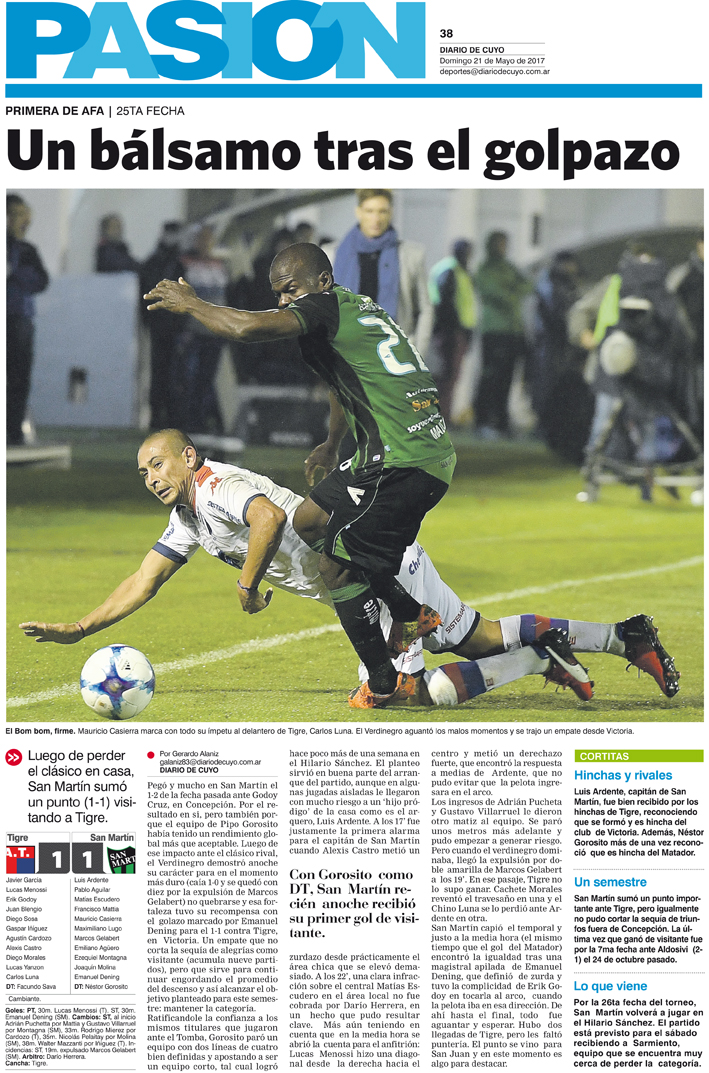 Diario de Cuyo | HOME | Noticias Tapa Pasión 21 de Mayo del 2017 Por Redacción Diario de Cuyo 21/05/2017 · 0:00 Escuchar la noticia Escuchar la noticia Your browser doesn’t support HTML5 audio Ver los comentarios ›