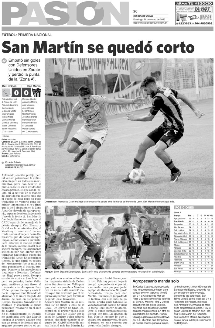 Diario de Cuyo | HOME | Noticias Tapa Pasión 21 de Mayo del 2023 Por Redacción Diario de Cuyo 20/05/2023 · 0:00 Escuchar la noticia Escuchar la noticia Your browser doesn’t support HTML5 audio Ver los comentarios ›