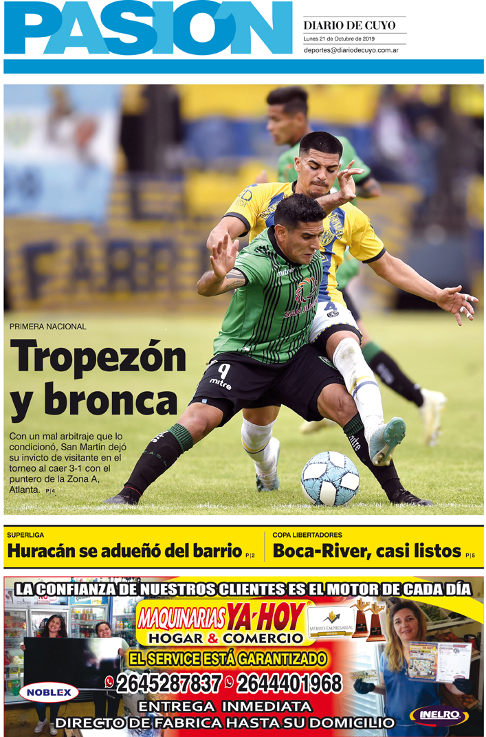 Diario de Cuyo | HOME | Noticias | Tapa Pasión Tapa Pasión 21 de Octubre de 2019 Por Redacción Diario de Cuyo 20/10/2019 · 0:00 Escuchar la noticia Escuchar la noticia Your browser doesn’t support HTML5 audio Tapa Pasión Ver los comentarios ›