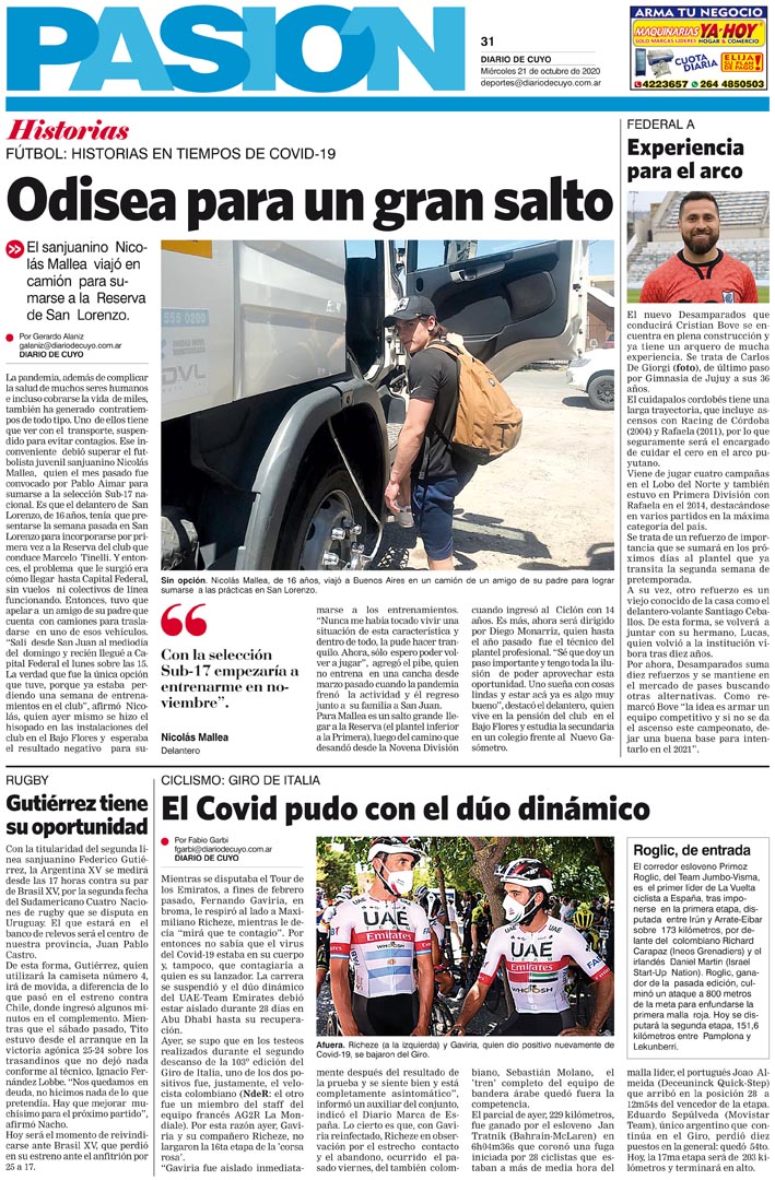 Diario de Cuyo | HOME | Noticias | Tapa Pasión Tapa Pasión 21 de Octubre de 2020 Por Redacción Diario de Cuyo 20/10/2020 · 0:00 Escuchar la noticia Escuchar la noticia Your browser doesn’t support HTML5 audio Tapa Pasión Ver los comentarios ›