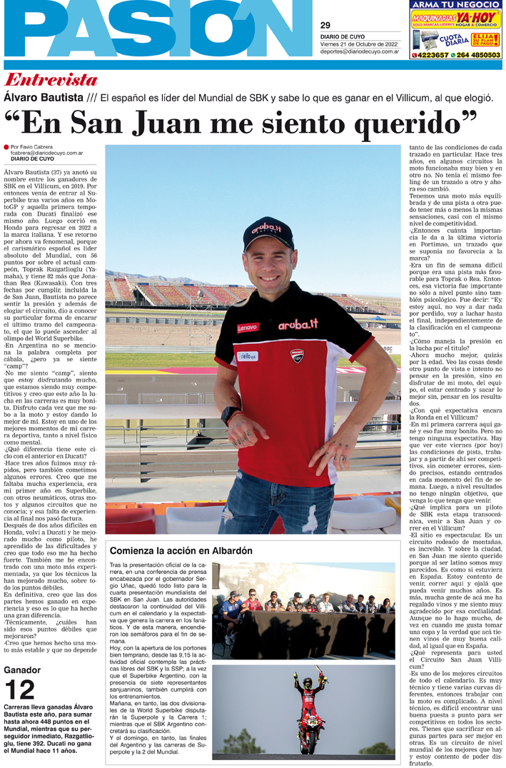 Diario de Cuyo | HOME | Noticias Tapa Pasión 21 de Octubre de 2022 Por Redacción Diario de Cuyo 20/10/2022 · 0:00 Escuchar la noticia Escuchar la noticia Your browser doesn’t support HTML5 audio Ver los comentarios ›