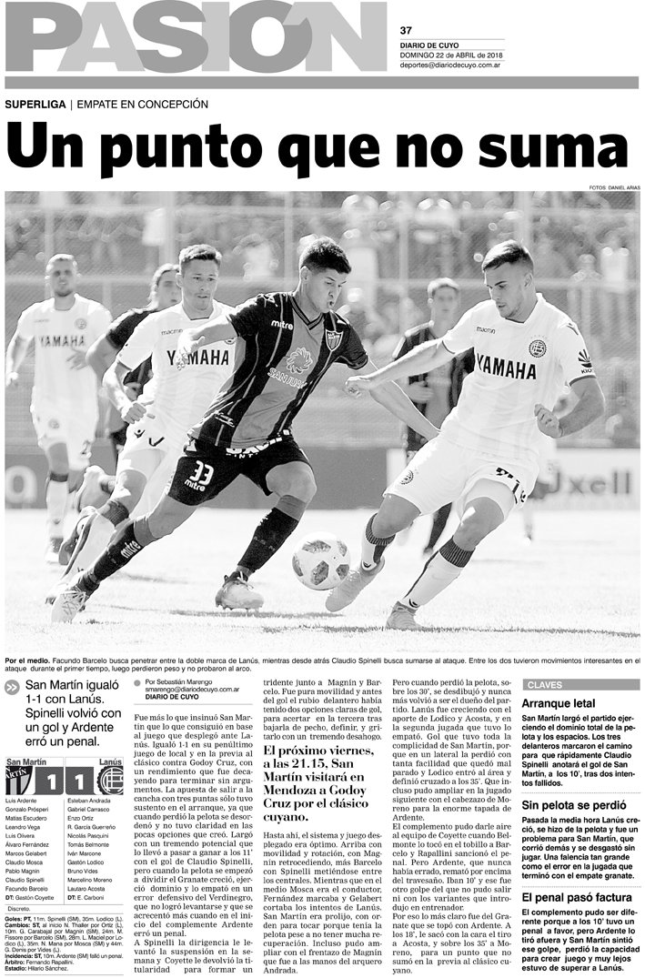 Diario de Cuyo | HOME | Noticias | Tapa Pasión Tapa Pasión 22 de Abril 2018 Por Redacción Diario de Cuyo 22/04/2018 · 0:00 Escuchar la noticia Escuchar la noticia Your browser doesn’t support HTML5 audio Tapa Pasión Ver los comentarios ›