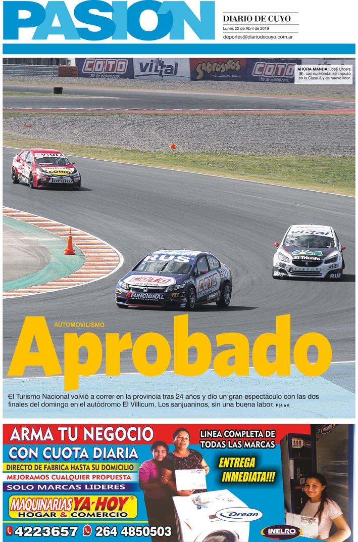 Diario de Cuyo | HOME | Noticias | Tapa Pasión Tapa Pasión 22 de Abril de 2019 Por Redacción Diario de Cuyo 21/04/2019 · 0:00 Escuchar la noticia Escuchar la noticia Your browser doesn’t support HTML5 audio Tapa Pasión Ver los comentarios ›