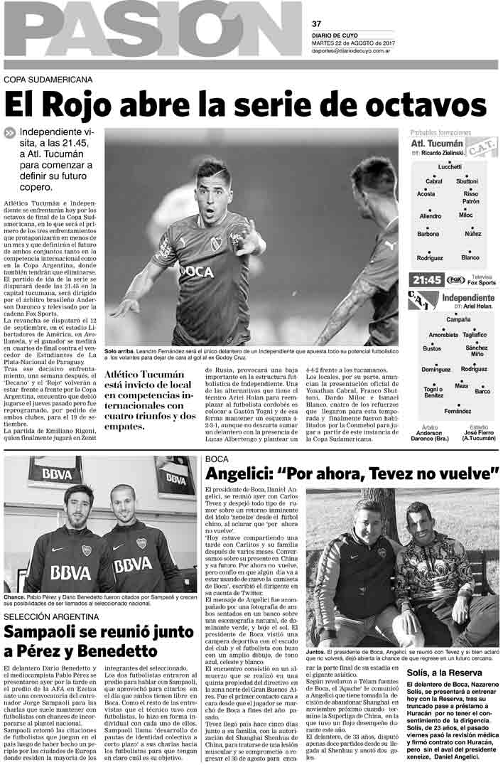 Diario de Cuyo | HOME | Noticias Tapa Pasión 22 de Agosto de 2017 Por Redacción Diario de Cuyo 21/08/2017 · 0:00 Escuchar la noticia Escuchar la noticia Your browser doesn’t support HTML5 audio Ver los comentarios ›