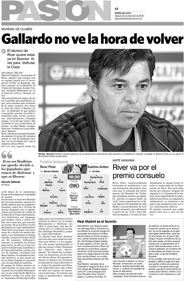 Diario de Cuyo | HOME | Noticias | Tapa Pasión Tapa Pasión 22 de Diciembre 2018 Por Redacción Diario de Cuyo 22/12/2018 · 0:00 Escuchar la noticia Escuchar la noticia Your browser doesn’t support HTML5 audio Tapa Pasión Ver los comentarios ›