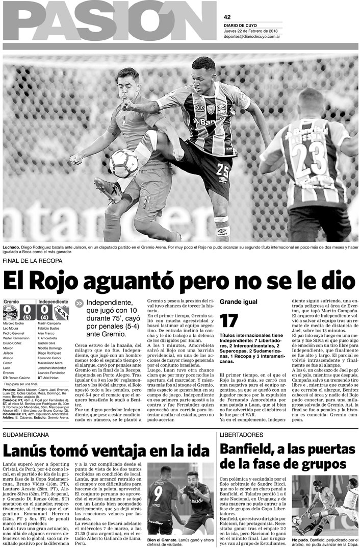 Diario de Cuyo | HOME | Noticias | Tapa Pasión Tapa Pasión 22 de Febrero del 2018 Por Redacción Diario de Cuyo 22/02/2018 · 0:00 Escuchar la noticia Escuchar la noticia Your browser doesn’t support HTML5 audio Tapa Pasión Ver los comentarios ›