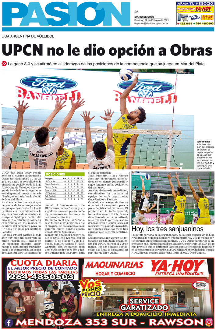 Diario de Cuyo | HOME | Noticias Tapa Pasión 22 de Febrero del 2021 Por Redacción Diario de Cuyo 21/02/2021 · 0:00 Escuchar la noticia Escuchar la noticia Your browser doesn’t support HTML5 audio Ver los comentarios ›