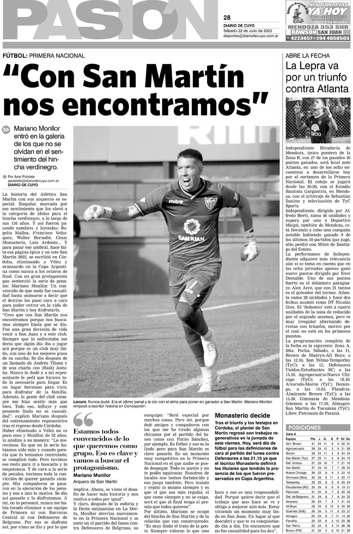 Diario de Cuyo | HOME | Noticias Tapa Pasión 22 de Julio del 2023 Por Redacción Diario de Cuyo 21/07/2023 · 0:00 Escuchar la noticia Escuchar la noticia Your browser doesn’t support HTML5 audio Ver los comentarios ›