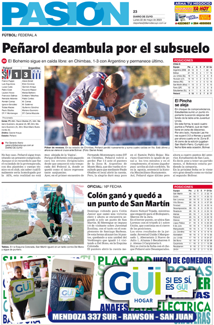 Diario de Cuyo | HOME | Noticias Tapa Pasión 22 de Mayo de 2023 Por Redacción Diario de Cuyo 21/05/2023 · 0:00 Escuchar la noticia Escuchar la noticia Your browser doesn’t support HTML5 audio Ver los comentarios ›