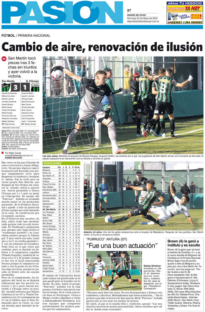 Diario de Cuyo | HOME | Noticias Tapa Pasión 22 de Mayo del 2022 Por Redacción Diario de Cuyo 21/05/2022 · 0:00 Escuchar la noticia Escuchar la noticia Your browser doesn’t support HTML5 audio Ver los comentarios ›