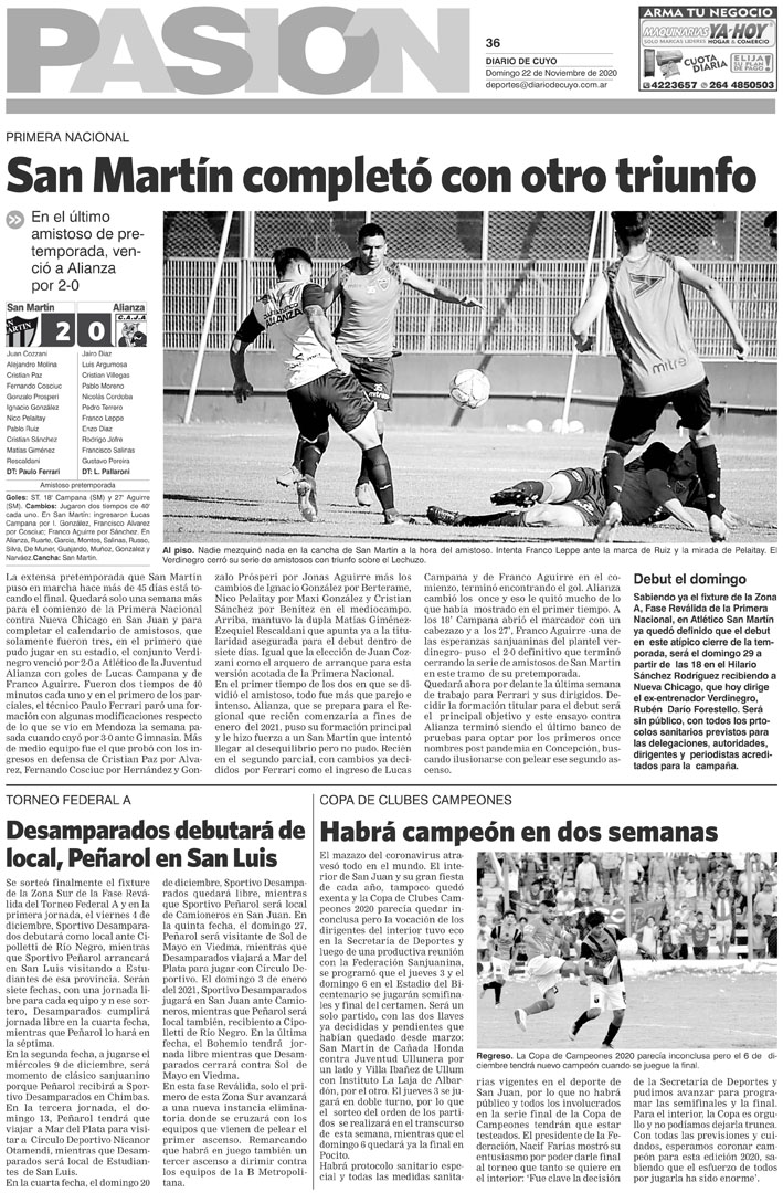 Diario de Cuyo | HOME | Noticias Tapa Pasión 22 de Noviembre del 2020 Por Redacción Diario de Cuyo 21/11/2020 · 0:00 Escuchar la noticia Escuchar la noticia Your browser doesn’t support HTML5 audio Ver los comentarios ›