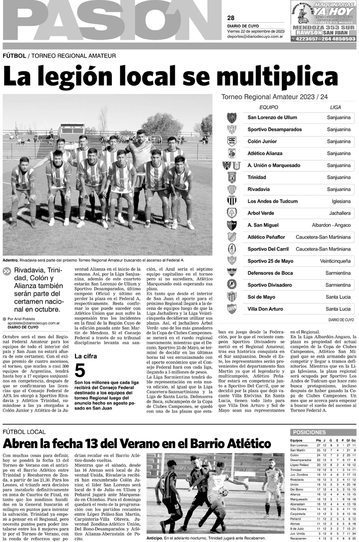Diario de Cuyo | HOME | Noticias Tapa Pasión 22 de Septiembre de 2023 Por Redacción Diario de Cuyo 21/09/2023 · 0:00 Escuchar la noticia Escuchar la noticia Your browser doesn’t support HTML5 audio Ver los comentarios ›