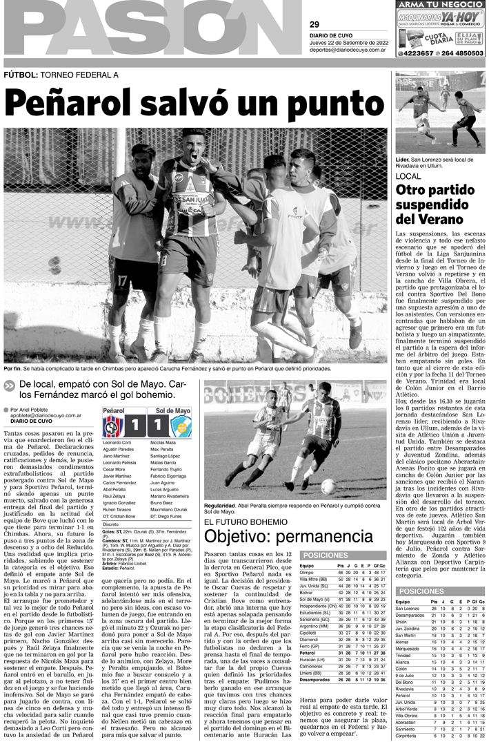 Diario de Cuyo | HOME | Noticias Tapa Pasión 22 de Septiembre del 2022 Por Redacción Diario de Cuyo 21/09/2022 · 0:00 Escuchar la noticia Escuchar la noticia Your browser doesn’t support HTML5 audio Ver los comentarios ›