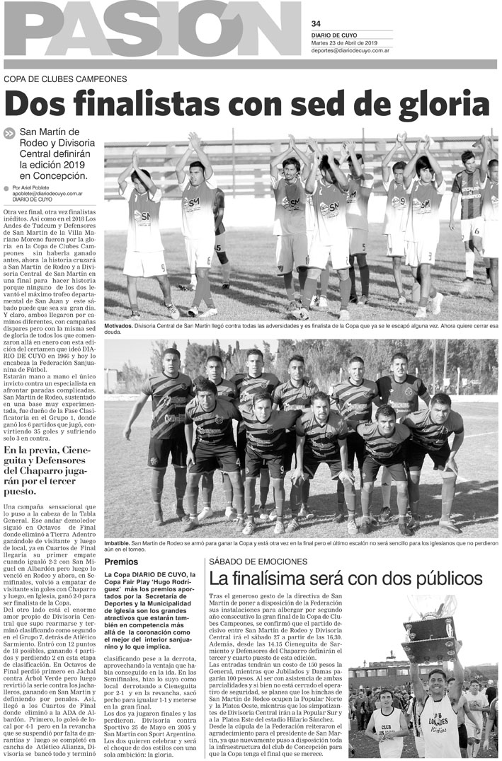 Diario de Cuyo | HOME | Noticias | Tapa Pasión Tapa Pasión 23 de Abril 2019 Por Redacción Diario de Cuyo 22/04/2019 · 0:00 Escuchar la noticia Escuchar la noticia Your browser doesn’t support HTML5 audio Tapa Pasión Ver los comentarios ›