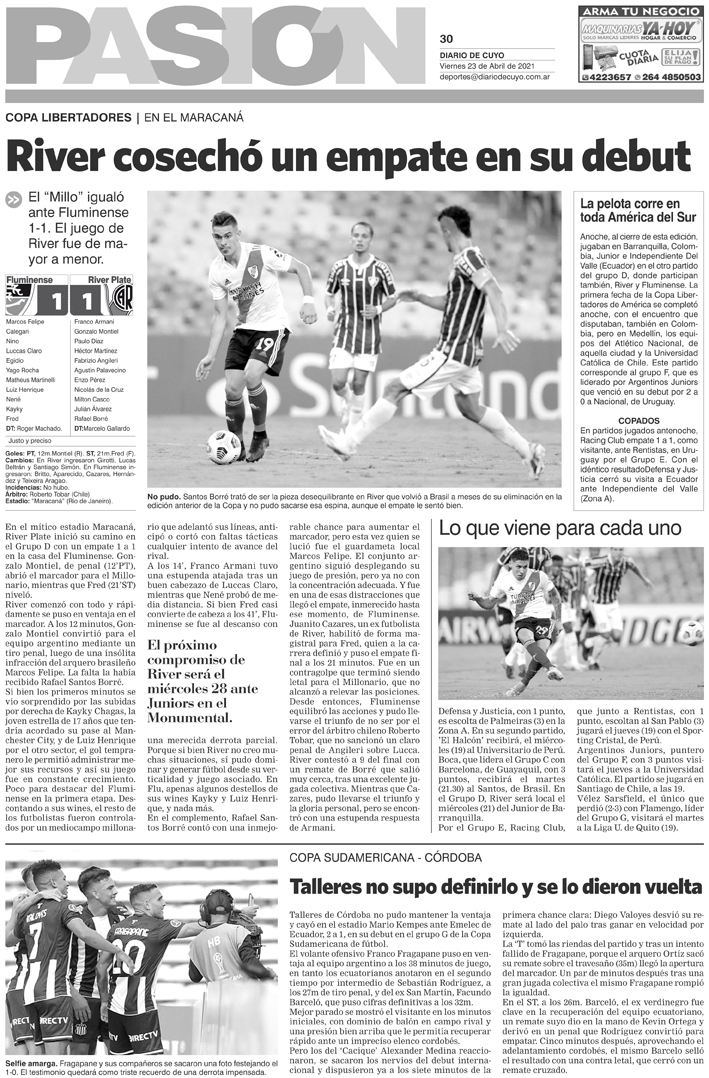 Diario de Cuyo | HOME | Noticias Tapa Pasión 23 de Abril del 2021 Por Redacción Diario de Cuyo 22/04/2021 · 0:00 Escuchar la noticia Escuchar la noticia Your browser doesn’t support HTML5 audio Ver los comentarios ›
