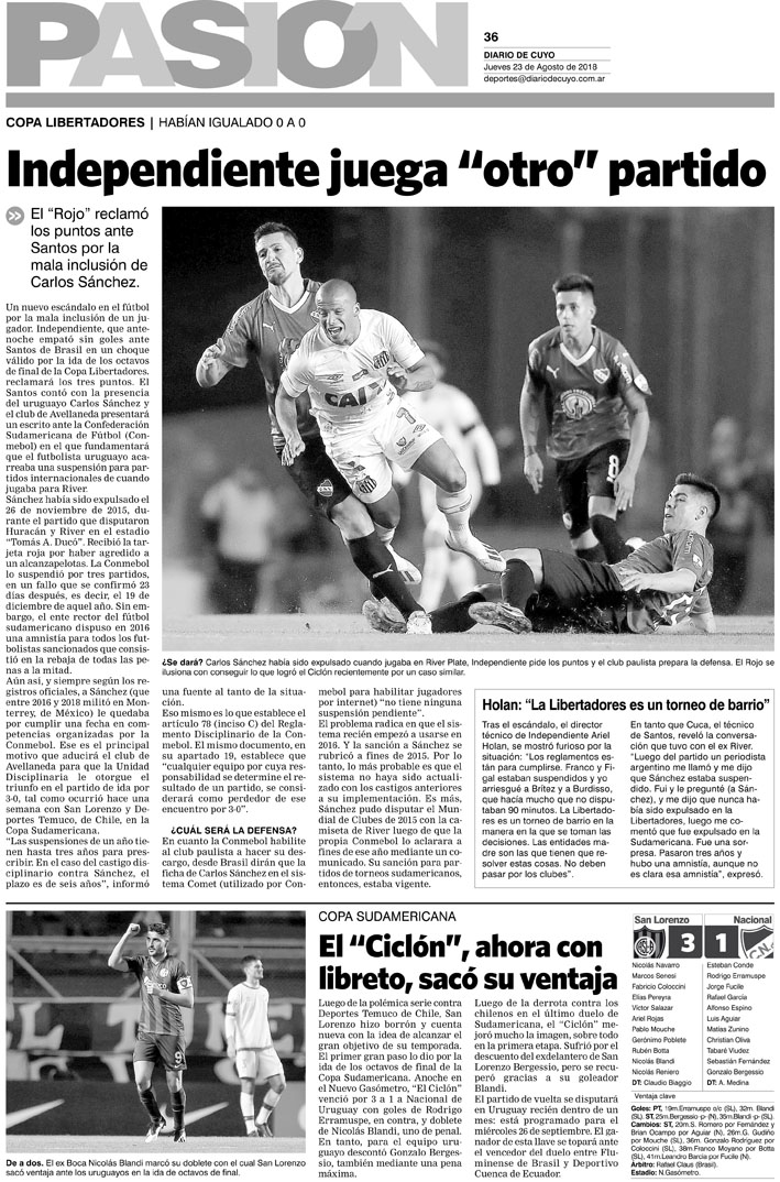 Diario de Cuyo | HOME | Noticias Tapa Pasión 23 de Agosto 2018 Por Redacción Diario de Cuyo 22/08/2018 · 0:00 Escuchar la noticia Escuchar la noticia Your browser doesn’t support HTML5 audio Ver los comentarios ›