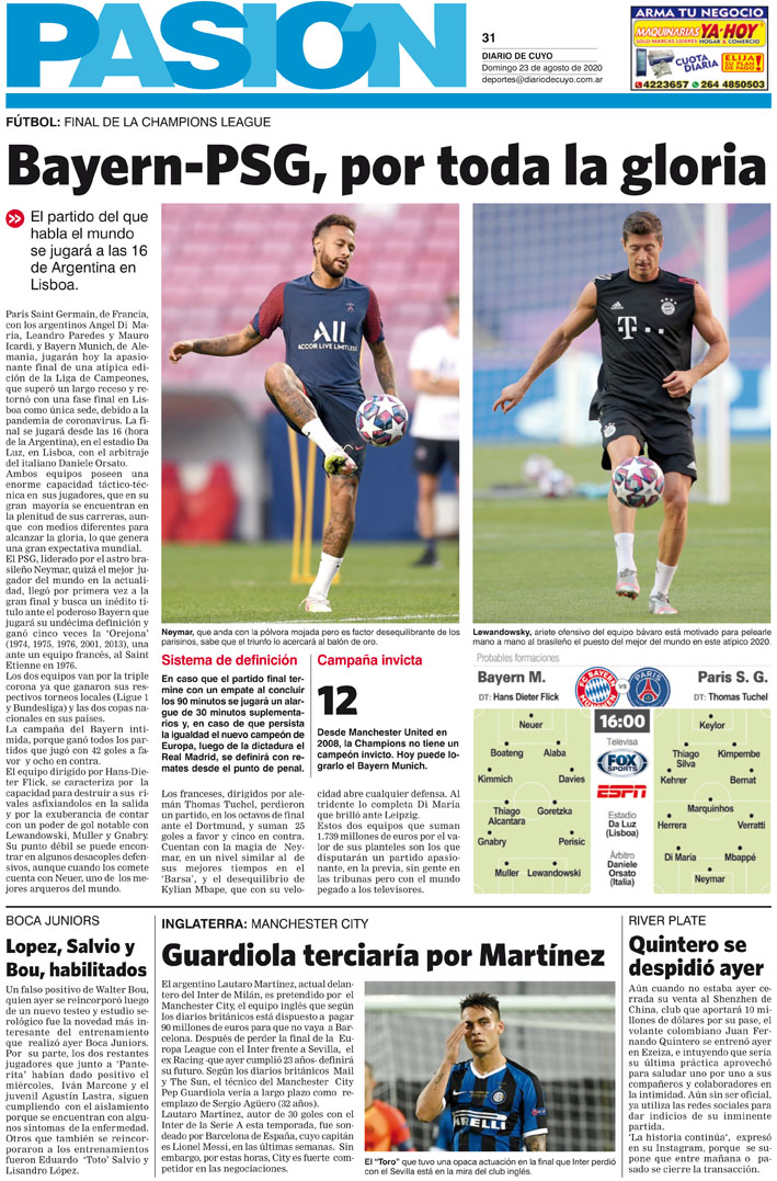 Diario de Cuyo | HOME | Noticias Tapa Pasión 23 de Agosto del 2020 Por Redacción Diario de Cuyo 22/08/2020 · 0:00 Escuchar la noticia Escuchar la noticia Your browser doesn’t support HTML5 audio Ver los comentarios ›