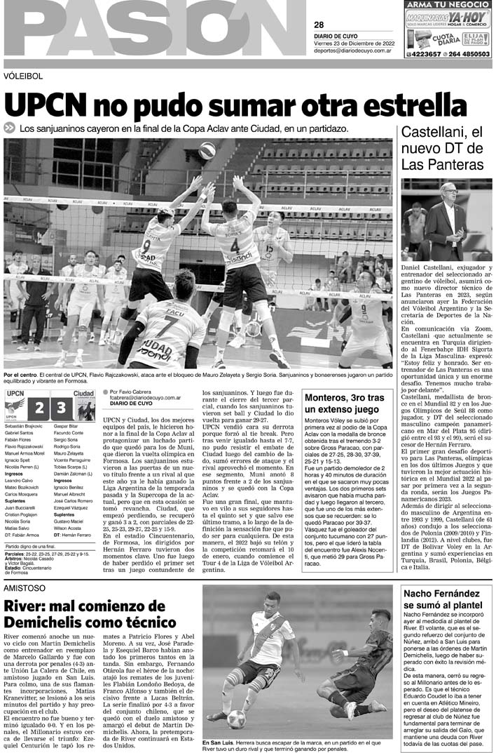 Diario de Cuyo | HOME | Noticias Tapa Pasión 23 de Diciembre 2022 Por Redacción Diario de Cuyo 23/12/2022 · 0:00 Escuchar la noticia Escuchar la noticia Your browser doesn’t support HTML5 audio Ver los comentarios ›