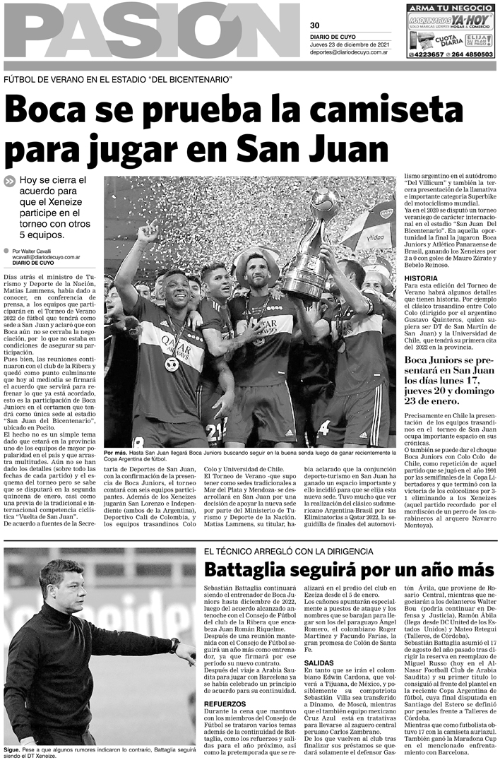 Diario de Cuyo | HOME | Noticias Tapa Pasión 23 de Diciembre del 2021 Por Redacción Diario de Cuyo 22/12/2021 · 0:00 Escuchar la noticia Escuchar la noticia Your browser doesn’t support HTML5 audio Ver los comentarios ›
