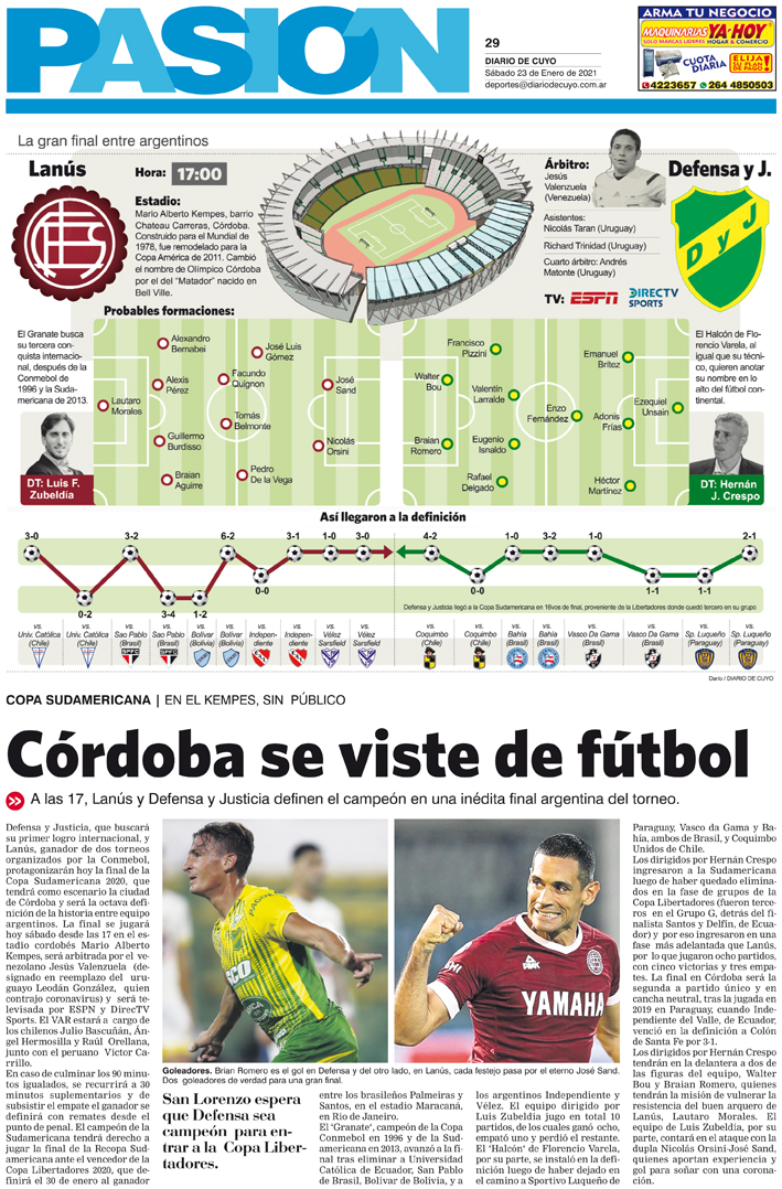 Diario de Cuyo | HOME | Noticias Tapa Pasión 23 de Enero del 2021 Por Redacción Diario de Cuyo 22/01/2021 · 0:00 Escuchar la noticia Escuchar la noticia Your browser doesn’t support HTML5 audio Ver los comentarios ›
