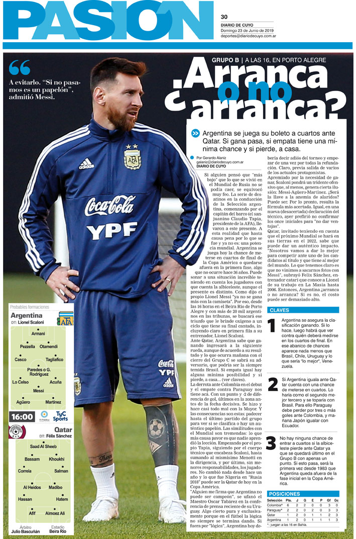 Diario de Cuyo | HOME | Noticias | Tapa Pasión Tapa Pasión 23 de Junio de 2019 Por Redacción Diario de Cuyo 22/06/2019 · 0:00 Escuchar la noticia Escuchar la noticia Your browser doesn’t support HTML5 audio Tapa Pasión Ver los comentarios ›
