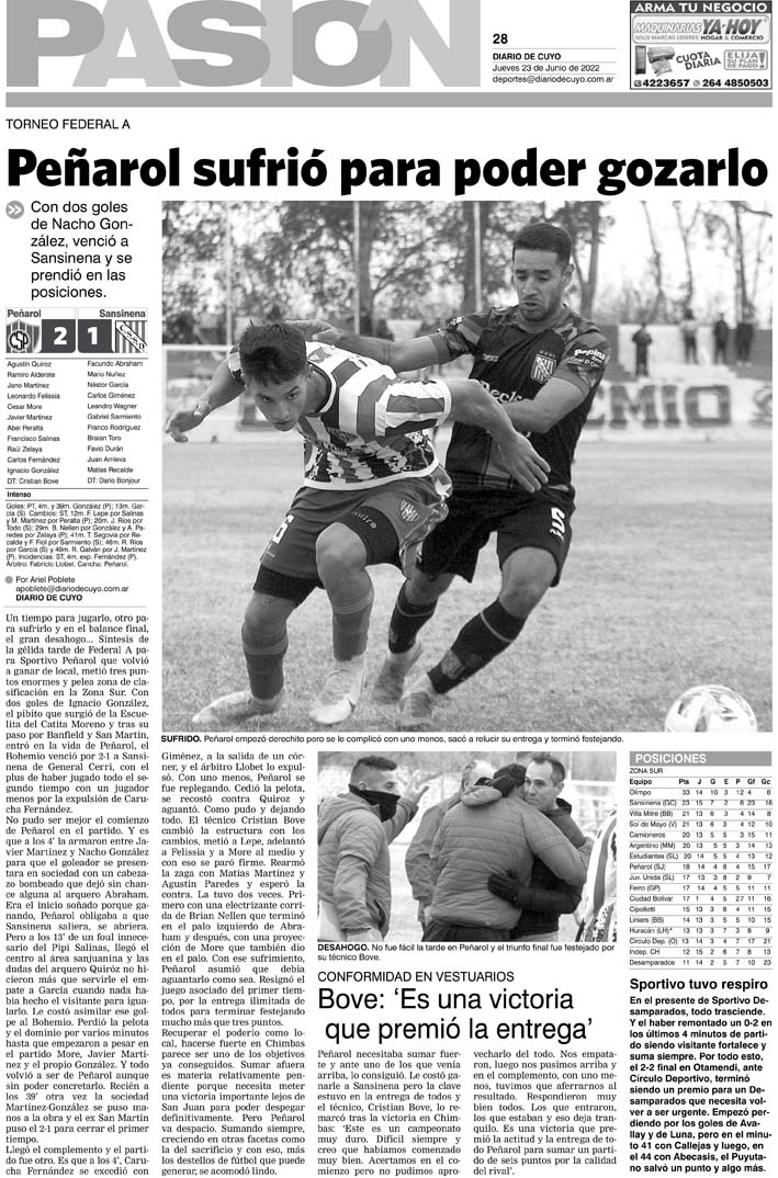 Diario de Cuyo | HOME | Noticias Tapa Pasión 23 de Junio de 2022 Por Redacción Diario de Cuyo 22/06/2022 · 0:00 Escuchar la noticia Escuchar la noticia Your browser doesn’t support HTML5 audio Ver los comentarios ›