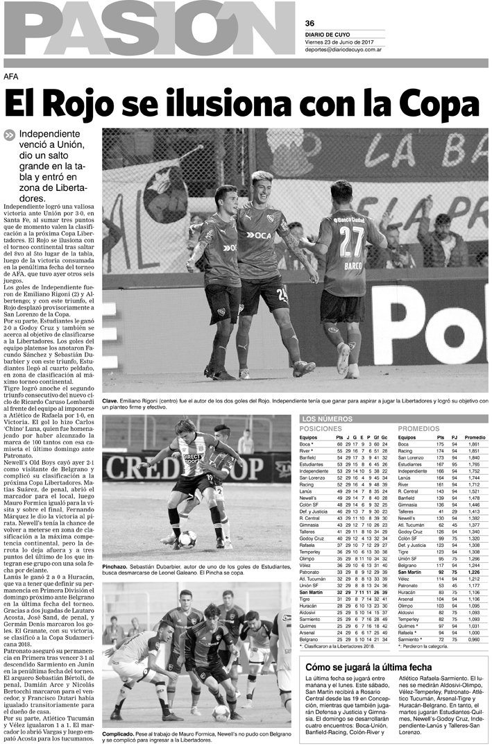 Diario de Cuyo | HOME | Noticias Tapa Pasión 23 de Junio del 2017 Por Redacción Diario de Cuyo 22/06/2017 · 0:00 Escuchar la noticia Escuchar la noticia Your browser doesn’t support HTML5 audio Ver los comentarios ›