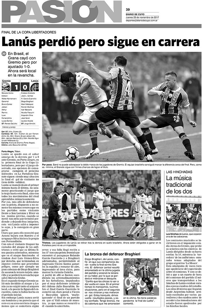 Diario de Cuyo | HOME | Noticias | Tapa Pasión Tapa Pasión 23 de Noviembre del 2017 Por Redacción Diario de Cuyo 23/11/2017 · 0:00 Escuchar la noticia Escuchar la noticia Your browser doesn’t support HTML5 audio Tapa Pasión Ver los comentarios ›