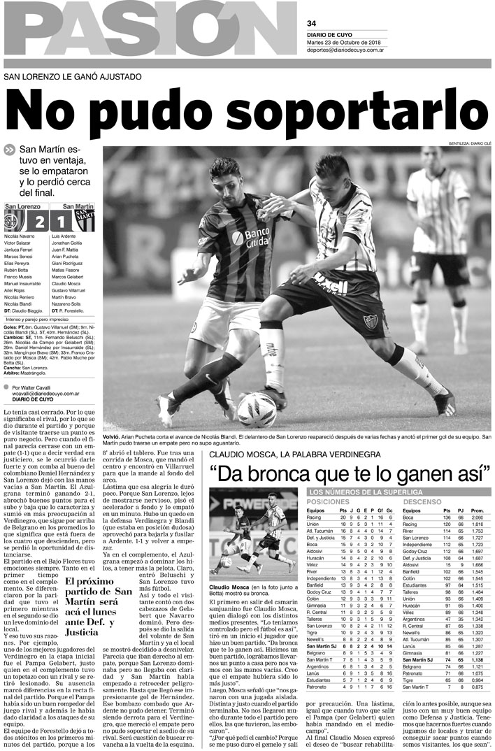 Diario de Cuyo | HOME | Noticias | Tapa Pasión Tapa Pasión 23 de Octubre 2018 Por Redacción Diario de Cuyo 23/10/2018 · 0:00 Escuchar la noticia Escuchar la noticia Your browser doesn’t support HTML5 audio Tapa Pasión Ver los comentarios ›