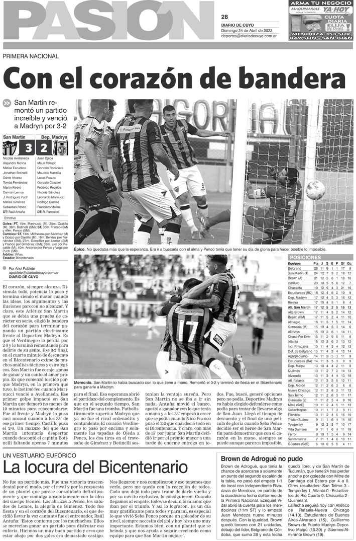 Diario de Cuyo | HOME | Noticias Tapa Pasión 24 de Abril del 2022 Por Redacción Diario de Cuyo 23/04/2022 · 0:00 Escuchar la noticia Escuchar la noticia Your browser doesn’t support HTML5 audio Ver los comentarios ›