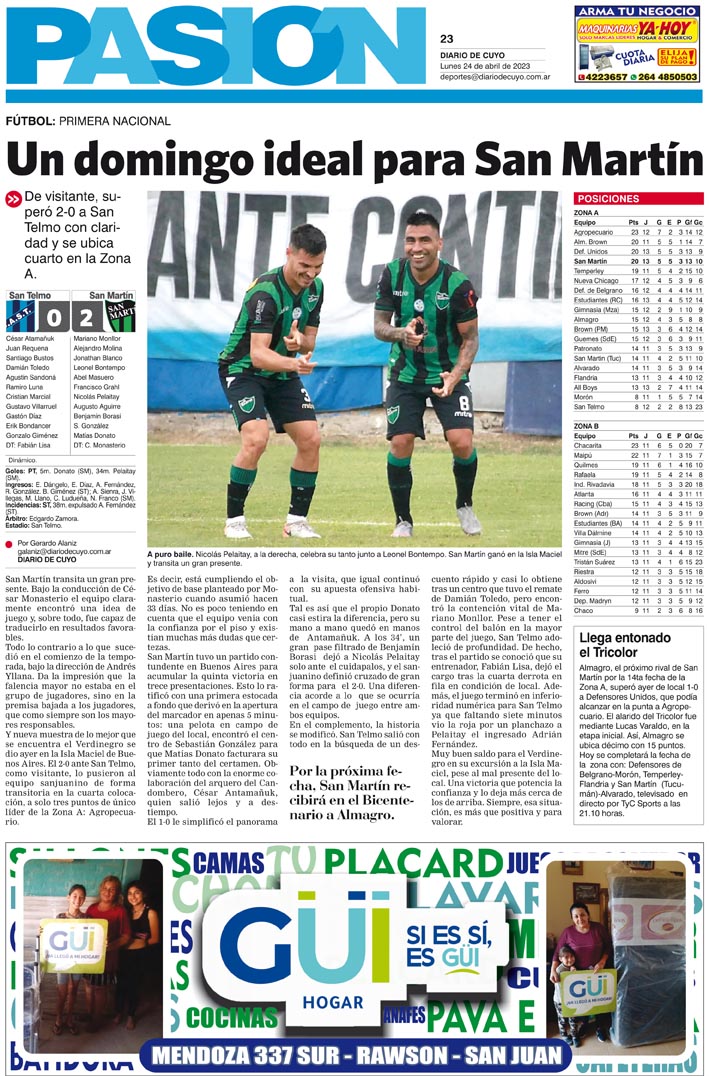 Diario de Cuyo | HOME | Noticias Tapa Pasión 24 de Abril del 2023 Por Redacción Diario de Cuyo 23/04/2023 · 0:00 Escuchar la noticia Escuchar la noticia Your browser doesn’t support HTML5 audio Ver los comentarios ›