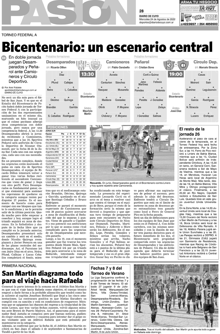 Diario de Cuyo | HOME | Noticias Tapa Pasión 24 de Agosto del 2022 Por Redacción Diario de Cuyo 23/08/2022 · 0:00 Escuchar la noticia Escuchar la noticia Your browser doesn’t support HTML5 audio Ver los comentarios ›