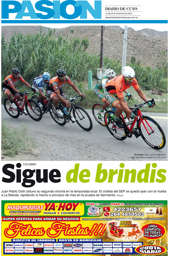 Diario de Cuyo | HOME | Noticias | Tapa Pasión Tapa Pasión 24 de Diciembre 2018 Por Redacción Diario de Cuyo 23/12/2018 · 0:00 Escuchar la noticia Escuchar la noticia Your browser doesn’t support HTML5 audio Tapa Pasión Ver los comentarios ›
