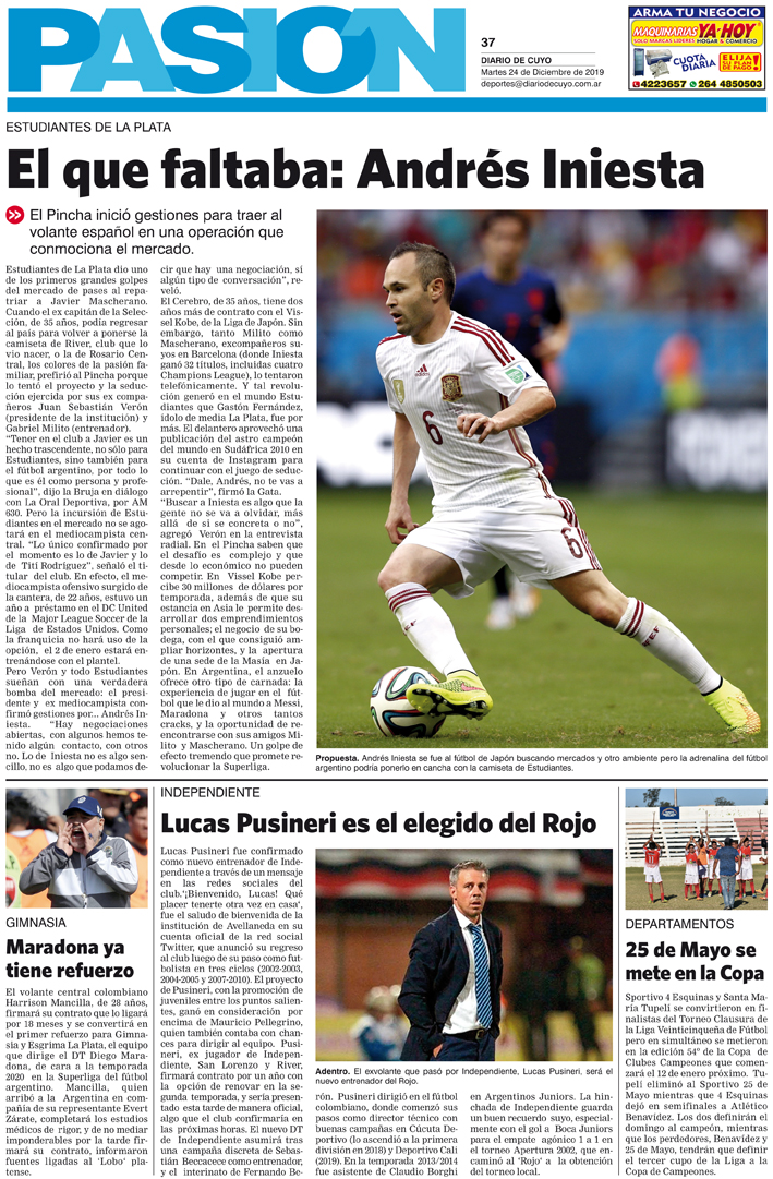 Diario de Cuyo | HOME | Noticias | Tapa Pasión Tapa Pasión 24 de Diciembre de 2019 Por Redacción Diario de Cuyo 23/12/2019 · 0:00 Escuchar la noticia Escuchar la noticia Your browser doesn’t support HTML5 audio Tapa Pasión Ver los comentarios ›