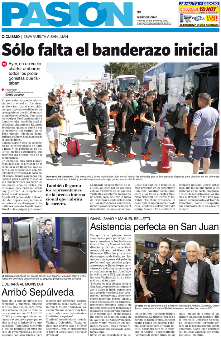 Diario de Cuyo | HOME | Noticias Tapa Pasión 24 de Enero de 2020 Por Redacción Diario de Cuyo 23/01/2020 · 0:00 Escuchar la noticia Escuchar la noticia Your browser doesn’t support HTML5 audio Ver los comentarios ›