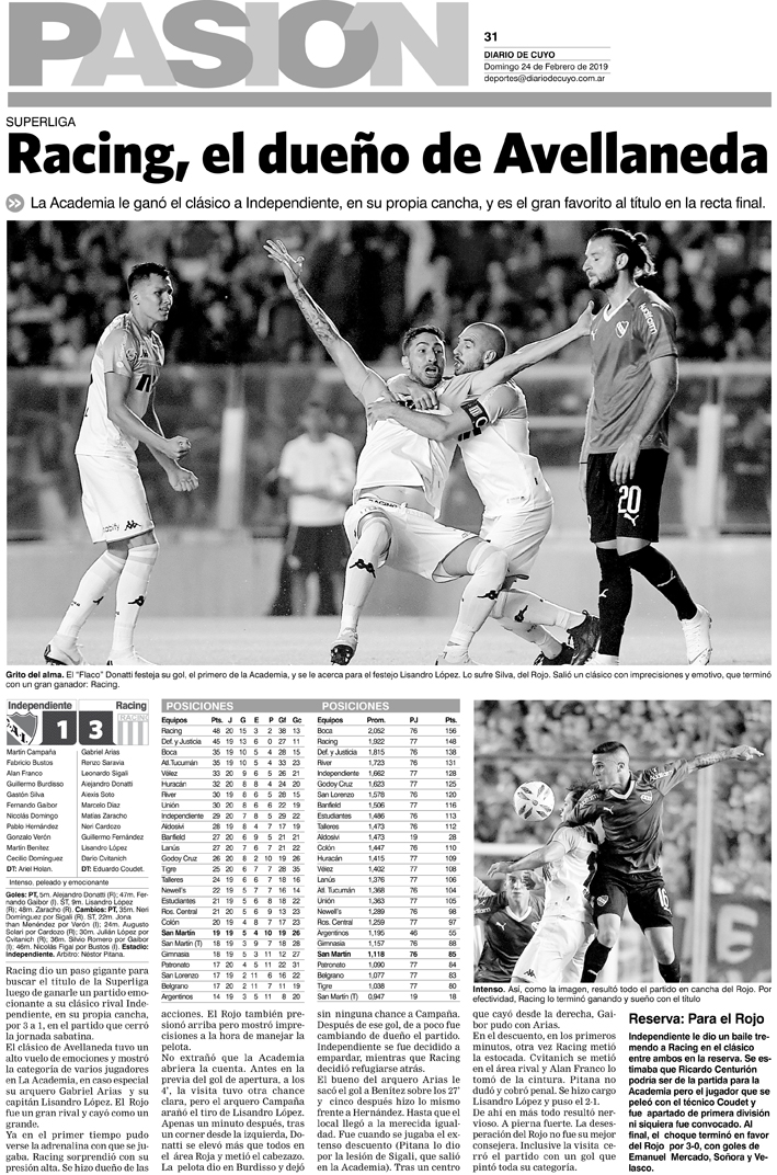 Diario de Cuyo | HOME | Noticias | Tapa Pasión Tapa Pasión 24 de Febrero de 2019 Por Redacción Diario de Cuyo 23/02/2019 · 0:00 Escuchar la noticia Escuchar la noticia Your browser doesn’t support HTML5 audio Tapa Pasión Ver los comentarios ›