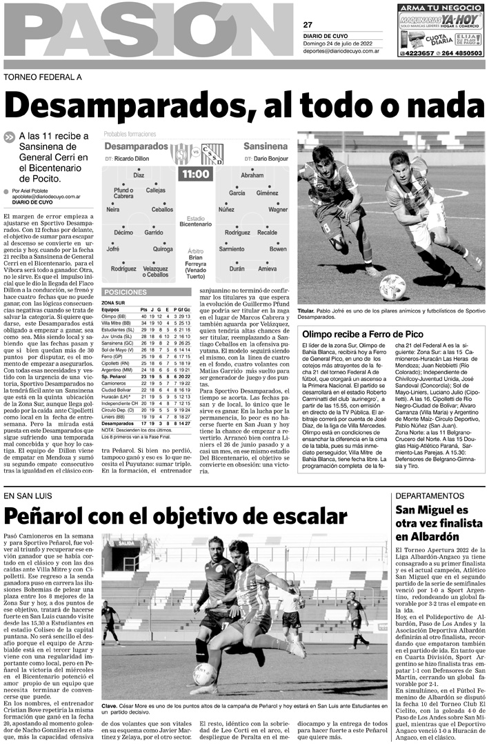 Diario de Cuyo | HOME | Noticias Tapa Pasión 24 de Julio del 2022 Por Redacción Diario de Cuyo 23/07/2022 · 0:00 Escuchar la noticia Escuchar la noticia Your browser doesn’t support HTML5 audio Ver los comentarios ›