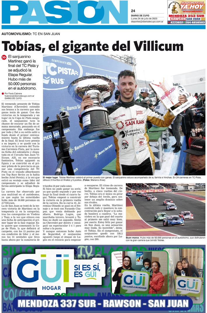 Diario de Cuyo | HOME | Noticias Tapa Pasión 24 de Julio del 2023 Por Redacción Diario de Cuyo 23/07/2023 · 0:00 Escuchar la noticia Escuchar la noticia Your browser doesn’t support HTML5 audio Ver los comentarios ›