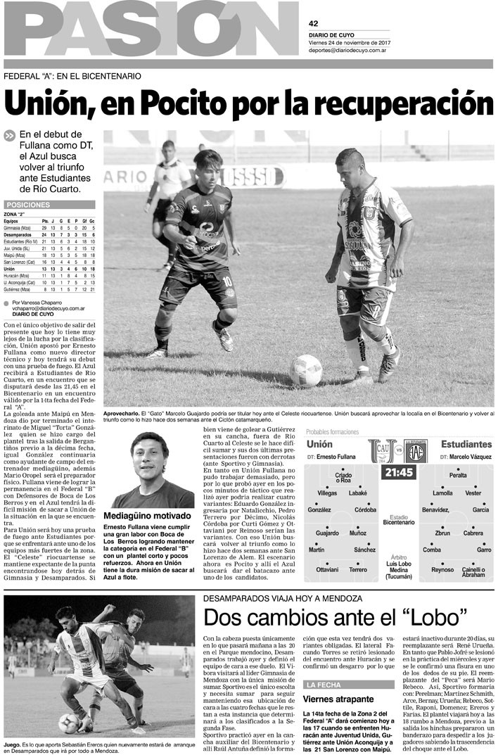 Diario de Cuyo | HOME | Noticias | Tapa Pasión Tapa Pasión 24 de Noviembre de 2017 Por Redacción Diario de Cuyo 23/11/2017 · 0:00 Escuchar la noticia Escuchar la noticia Your browser doesn’t support HTML5 audio Tapa Pasión Ver los comentarios ›