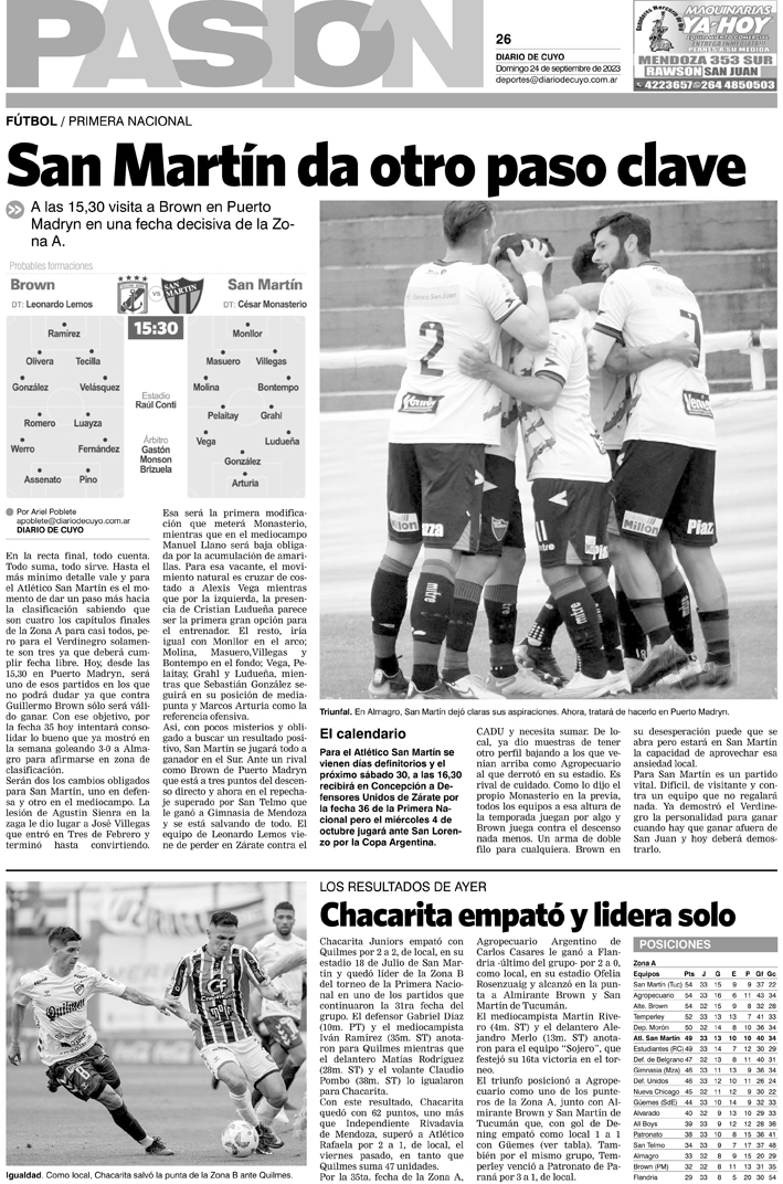 Diario de Cuyo | HOME | Noticias Tapa Pasión 24 de Septiembre de 2023 Por Redacción Diario de Cuyo 23/09/2023 · 0:00 Escuchar la noticia Escuchar la noticia Your browser doesn’t support HTML5 audio Ver los comentarios ›