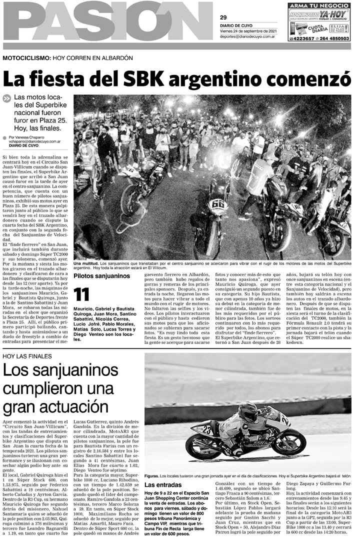 Diario de Cuyo | HOME | Noticias Tapa Pasión 24 de Septiembre del 2021 Por Redacción Diario de Cuyo 23/09/2021 · 0:00 Escuchar la noticia Escuchar la noticia Your browser doesn’t support HTML5 audio Ver los comentarios ›