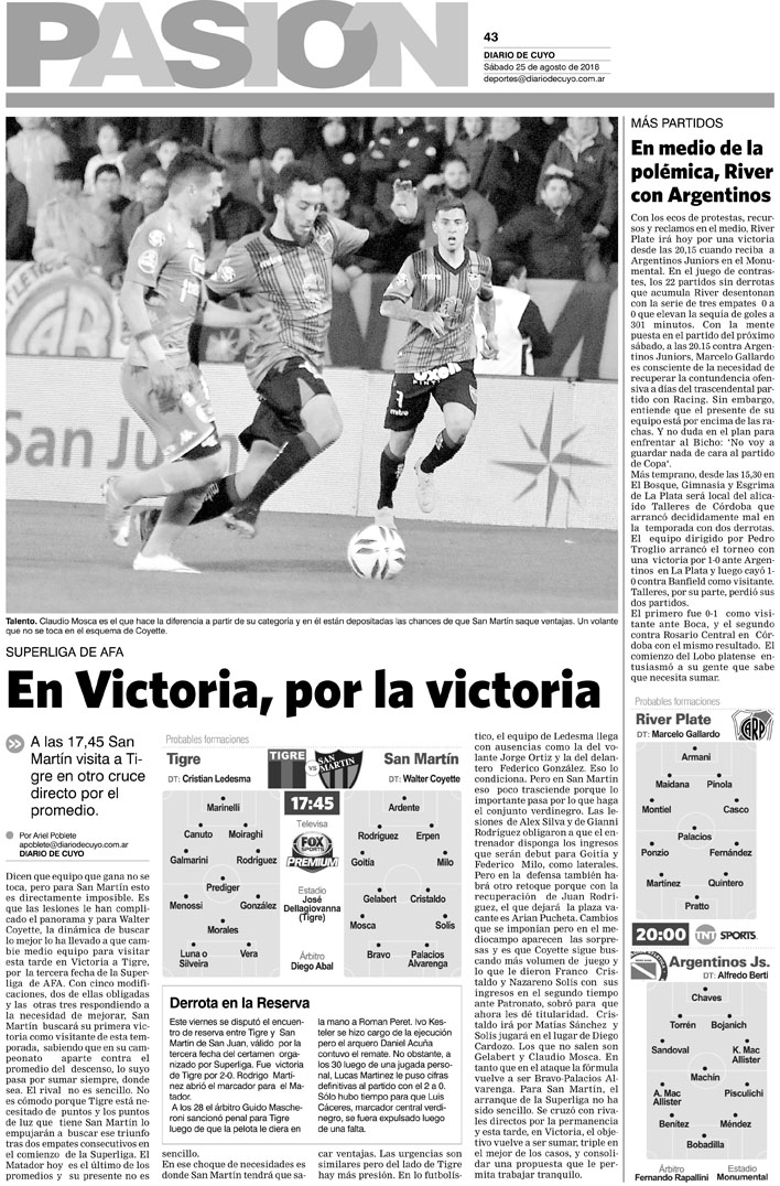 Diario de Cuyo | HOME | Noticias | Tapa Pasión Tapa Pasión 25 de Agosto 2018 Por Redacción Diario de Cuyo 24/08/2018 · 0:00 Escuchar la noticia Escuchar la noticia Your browser doesn’t support HTML5 audio Tapa Pasión Ver los comentarios ›