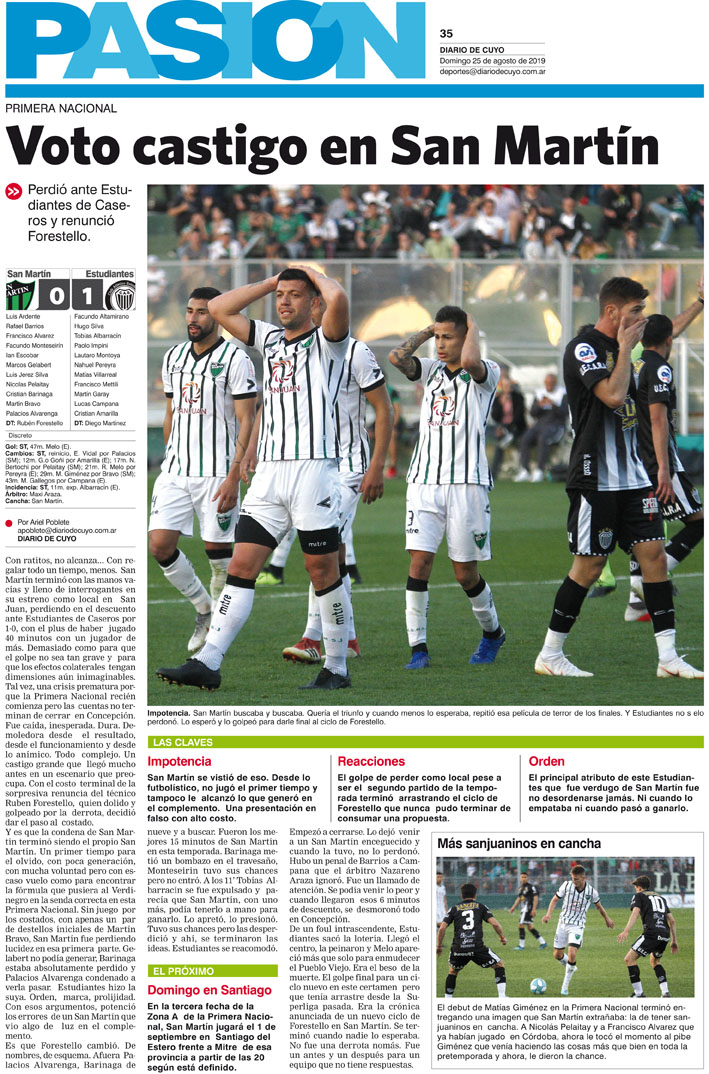 Diario de Cuyo | HOME | Noticias | Tapa Pasión Tapa Pasión 25 de Agosto 2019 Por Redacción Diario de Cuyo 24/08/2019 · 0:00 Escuchar la noticia Escuchar la noticia Your browser doesn’t support HTML5 audio Tapa Pasión Ver los comentarios ›