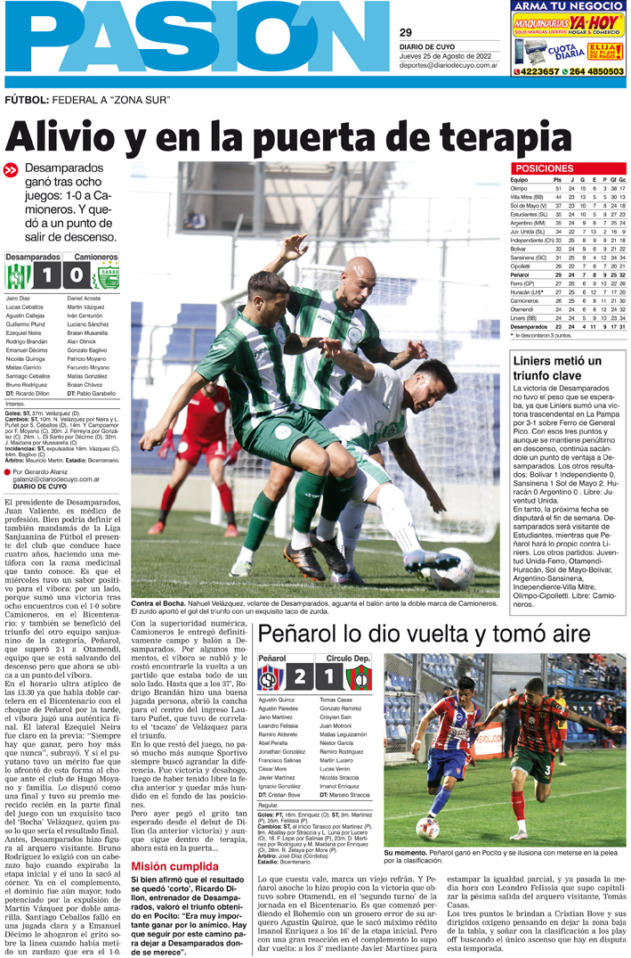 Diario de Cuyo | HOME | Noticias Tapa Pasión 25 de Agosto del 2022 Por Redacción Diario de Cuyo 24/08/2022 · 0:00 Escuchar la noticia Escuchar la noticia Your browser doesn’t support HTML5 audio Ver los comentarios ›