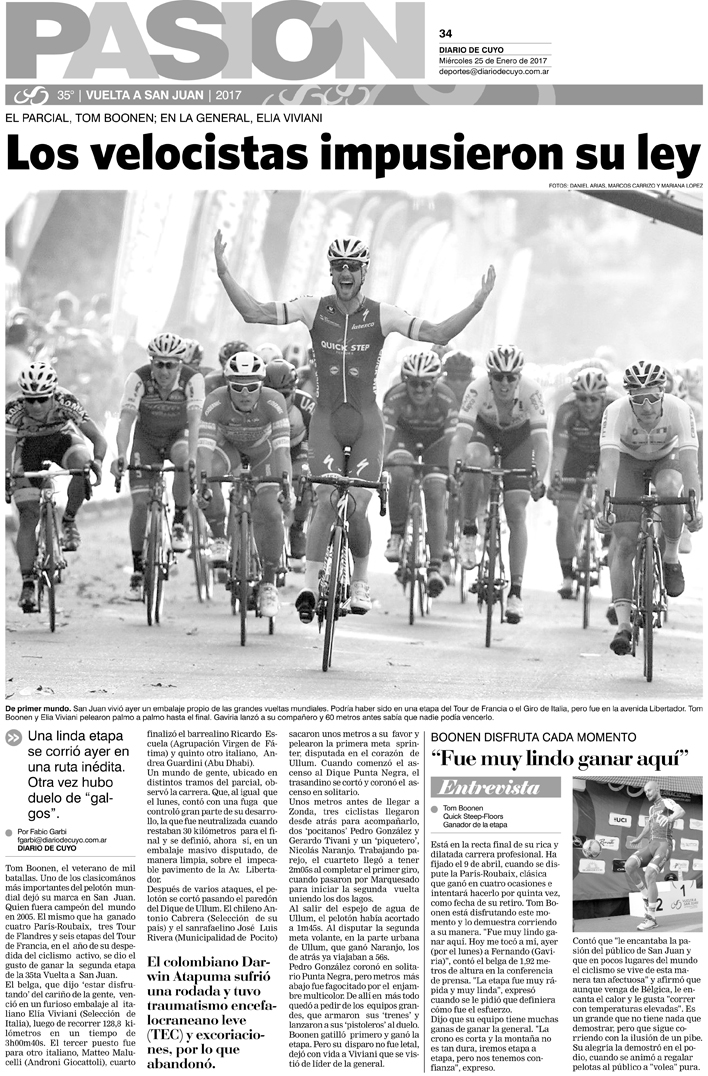 Diario de Cuyo | HOME | Noticias Tapa Pasión 25 de Enero del 2017 Por Redacción Diario de Cuyo 25/01/2017 · 0:00 Escuchar la noticia Escuchar la noticia Your browser doesn’t support HTML5 audio Ver los comentarios ›