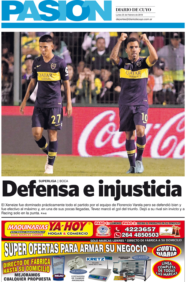 Diario de Cuyo | HOME | Noticias | Tapa Pasión Tapa Pasión 25 de Febrero 2019 Por Redacción Diario de Cuyo 25/02/2019 · 0:00 Escuchar la noticia Escuchar la noticia Your browser doesn’t support HTML5 audio Tapa Pasión Ver los comentarios ›